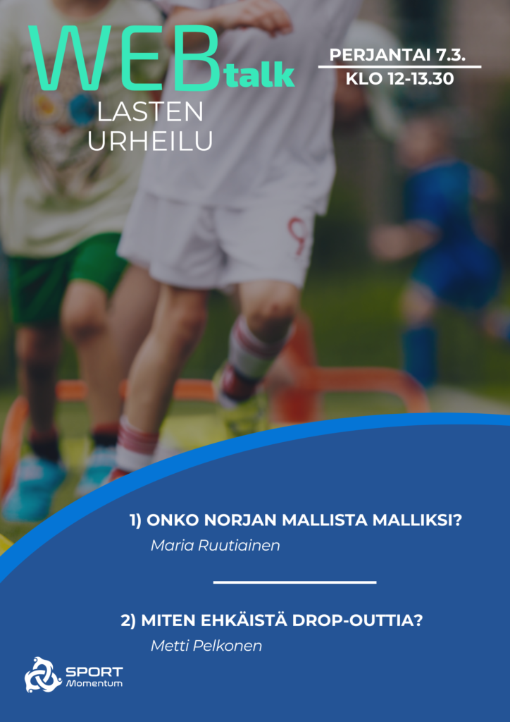 Tämän kertaisessa tilaisuudessa on alustuksena kaksi aihealuetta. Ensimmäisenä Maria Ruutiainen johdattelee meidät pohtimaan Norjan mallin erityispiirteitä ja peilaamaan, toimisivatko samat toimintatavat myös Suomessa. Toisena alustuksena syvennymme pohtimaan dropout-ilmiötä ja keinoja lasten ja nuorten pitämiseen mukana harrastustoiminnassa.